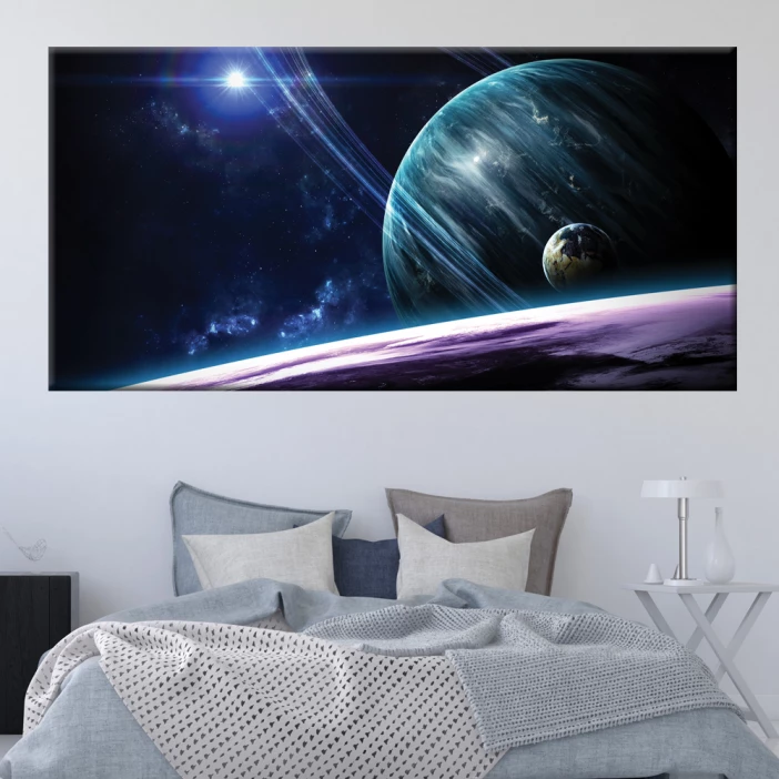 Dê mais vida a sua casa com este magnífico quadro universo, uma obra de arte que representa outros planetas e galáxias distantes para dar um toque de requinte ao seu interior.
